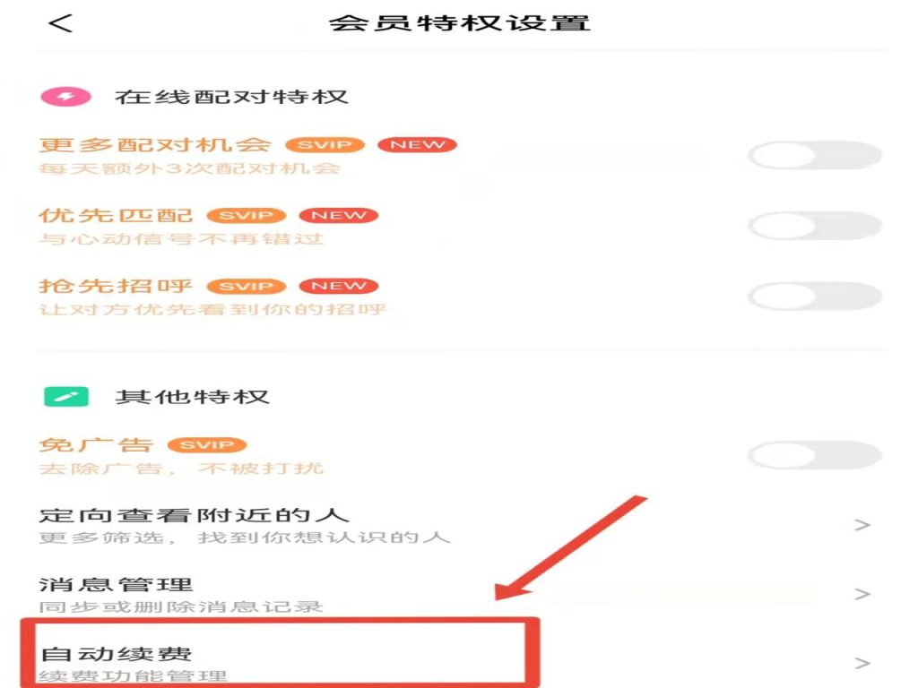 3、点击“查看全部会员设置”,点击会员特权设置底部的“自动续费”选项。