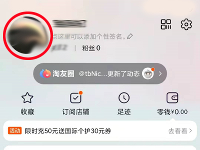 1、打开淘宝,切换到“我的淘宝”界面,点击头像。