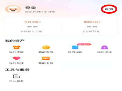 1、打开搜狗键盘app,切换到“我的”界面,点击设置。