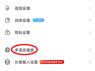 2、在设置页面选择“多语言键盘”,进入多语言键盘页面。