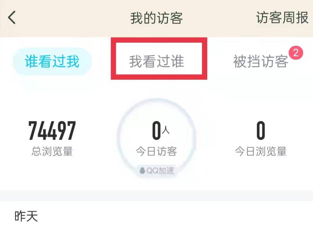3、在访客界面点击“我看过谁”,找到要隐身的记录。