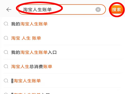 2、在搜索框内输入“淘宝人生账单”,点击右边的“搜索”。
