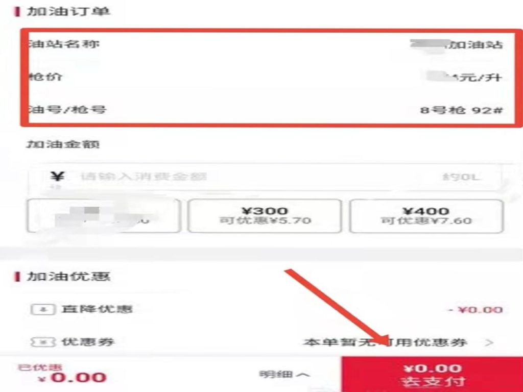 4、输入油号和油枪,点击“确认”进入付款界面完成付款即可。