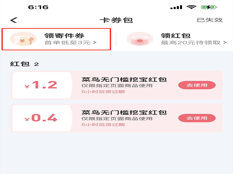 3、点击“领寄件券”,进入菜鸟裹裹优惠商城。
