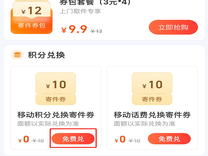 4、点击“免费兑”,进入菜鸟裹裹寄件券兑换页面。