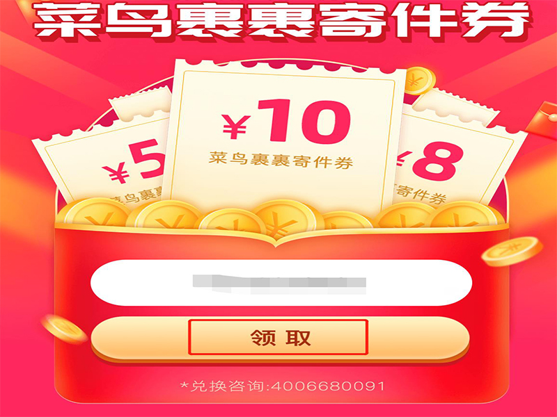5、在菜鸟裹裹寄件券兑换页面上,输入领取的手机号,并点击“领取”即可。