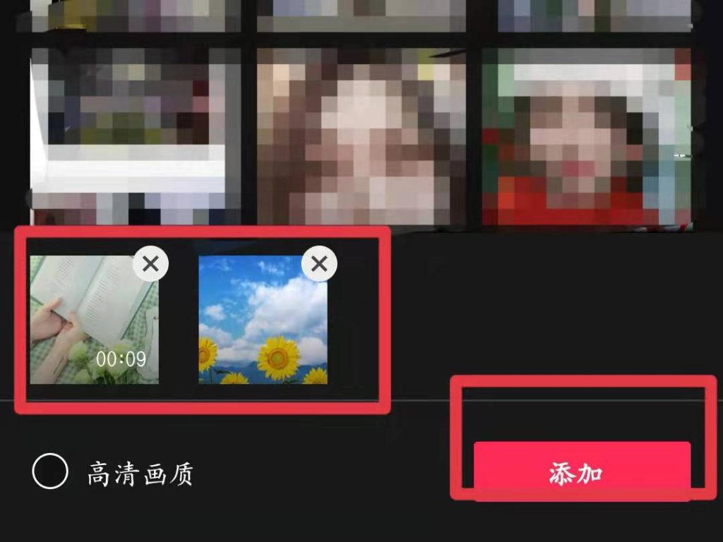 2、勾选需要合成的视频和照片,再点击“添加”。