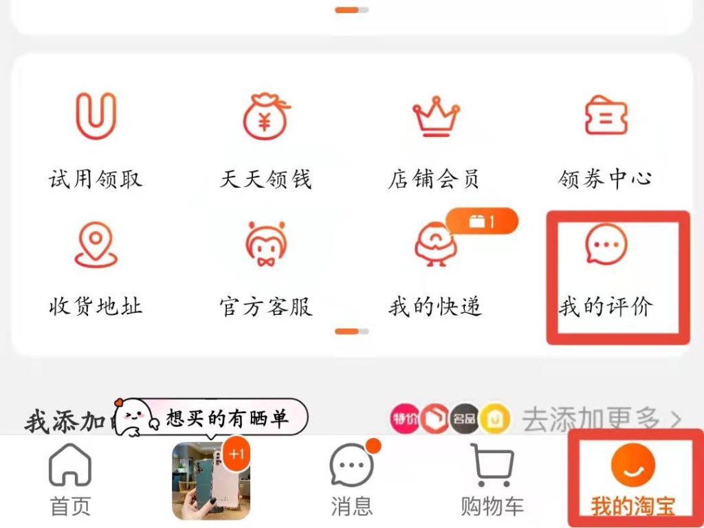 1、打开淘宝APP,点击“我的淘宝”,再点击“我的评价”,进入评价界面。