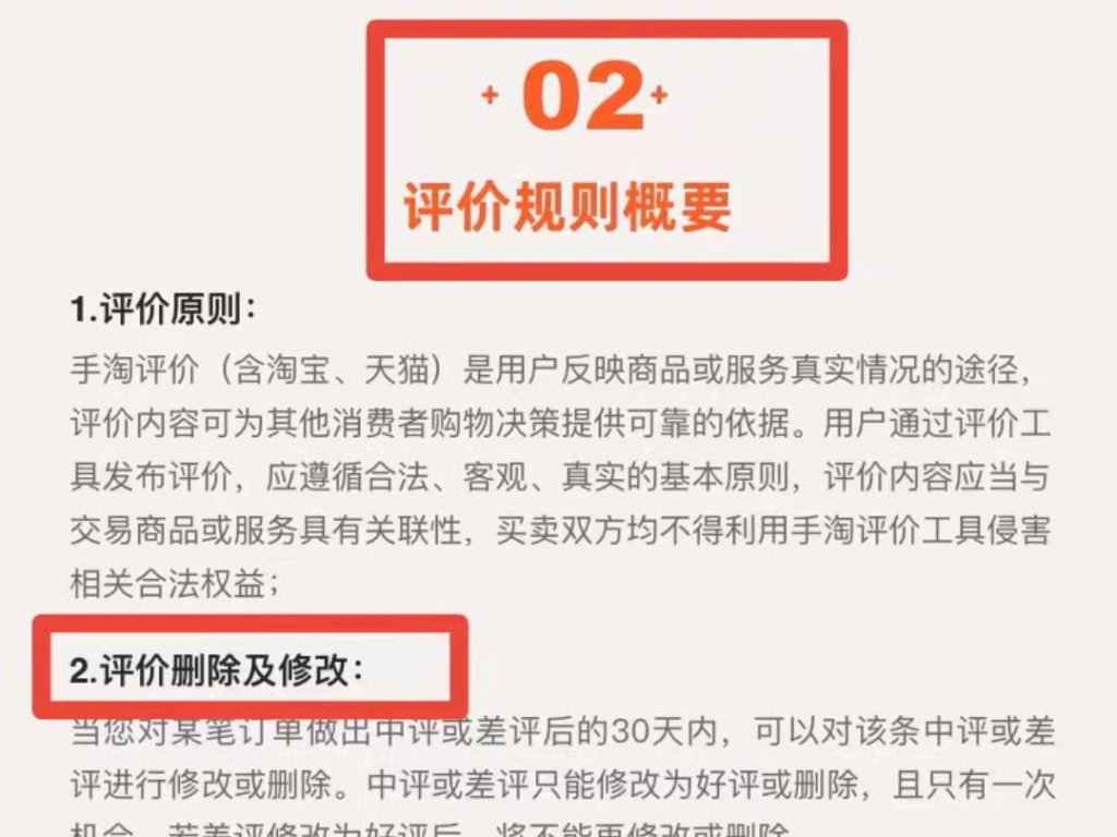 3、下滑界面,“02评价规则概要”下方有“评价删除及修改”的具体说明。