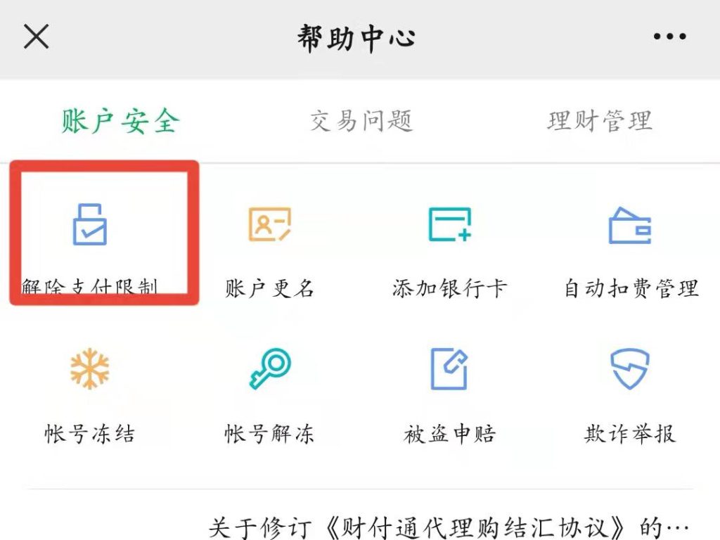3、点击左上角的“解除支付限制”,按照系统要求操作即可。