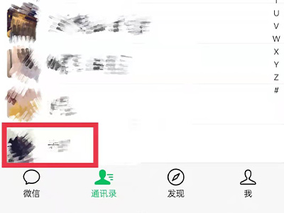 1、打开微信,切换到联系人页面,选择置顶聊天的好友。