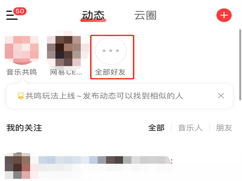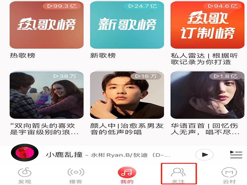 1、打开网易云音乐app,点击“关注”,进入关注页面。