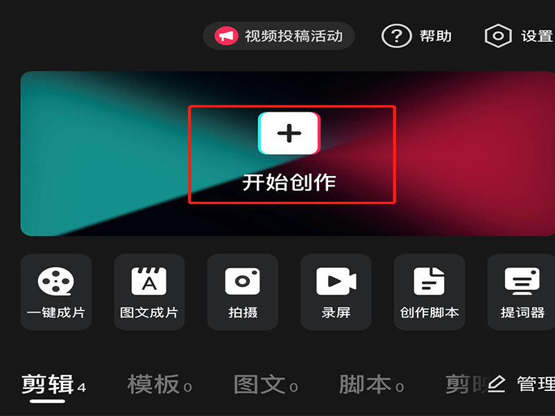 1、打开剪映app,点击“开始创作”,即可添加视频开始视频制作。