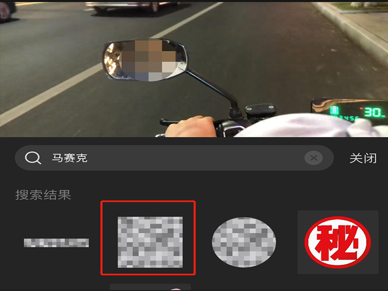 3、在贴纸预览页面上搜索马赛克,并点击将其添加至视频中。