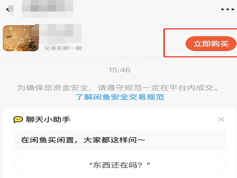 1、打开闲鱼app,搜索需要购买的商品,点击进入商品详情页。