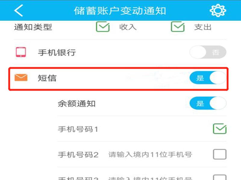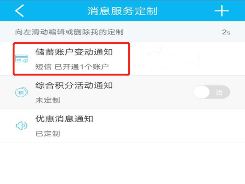 3、在消息服务定制页面上,点击“储蓄账户变动通知”,进入账户变动页面。