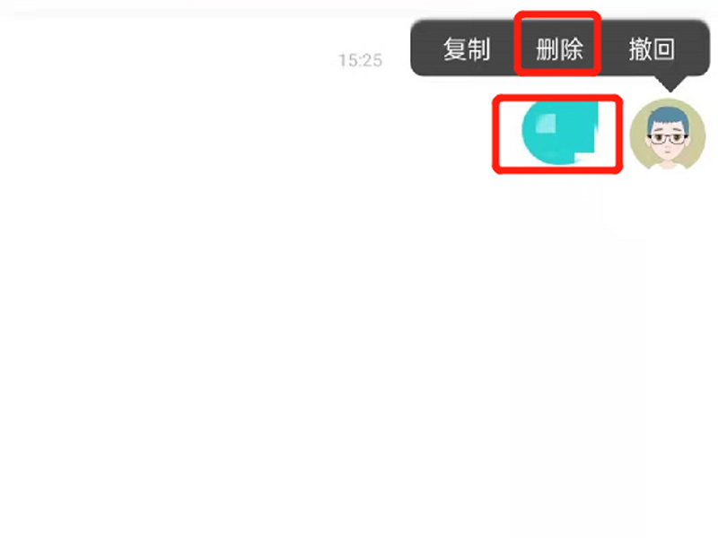 2、长按要删除的聊天记录,在弹起的选项中选择“删除”即可。