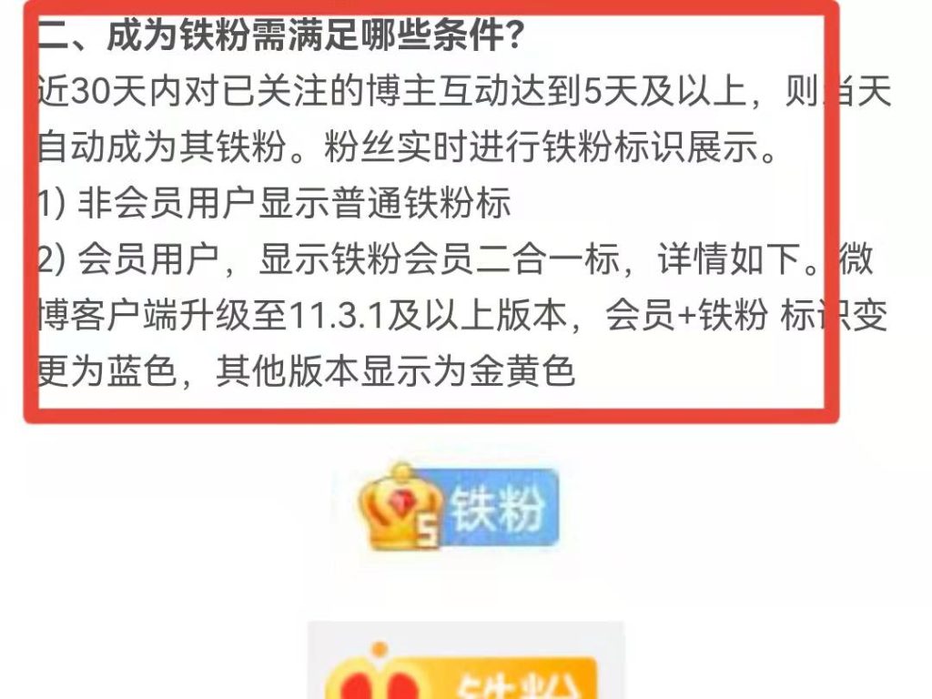 微博铁粉标识怎么获得要什么条件