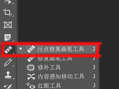 2、选择左侧工具栏中的“污点修复画笔工具”。