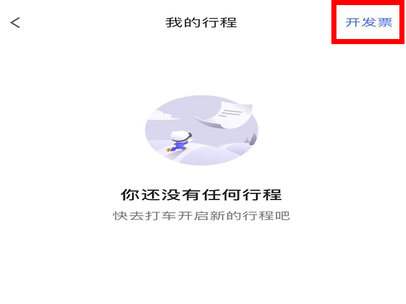 3、进入“我的行程”的界面后,点击右上方的“开发票”。
