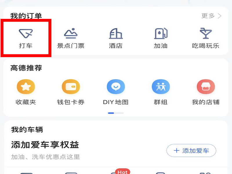 2、进入“我的”的界面后,点击界面上方的“打车”。