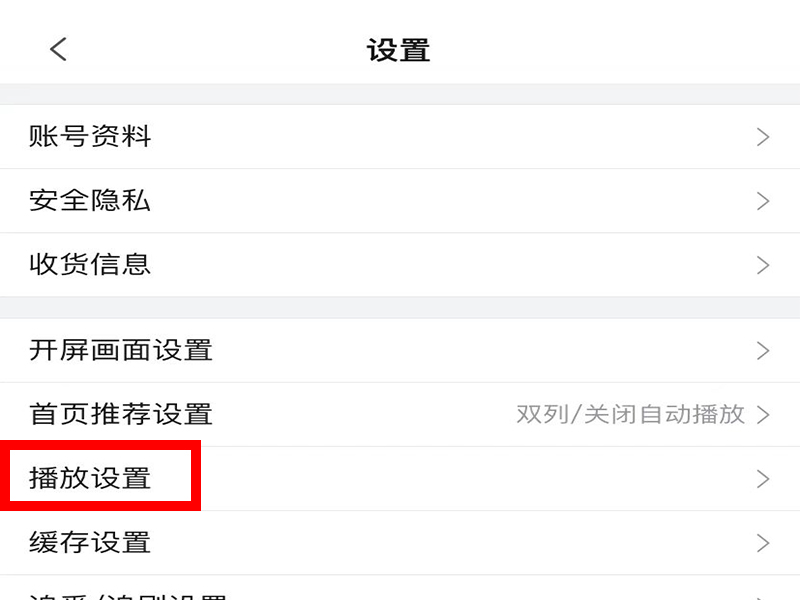2、进入“设置”界面后,找到并点击“播放设置”。