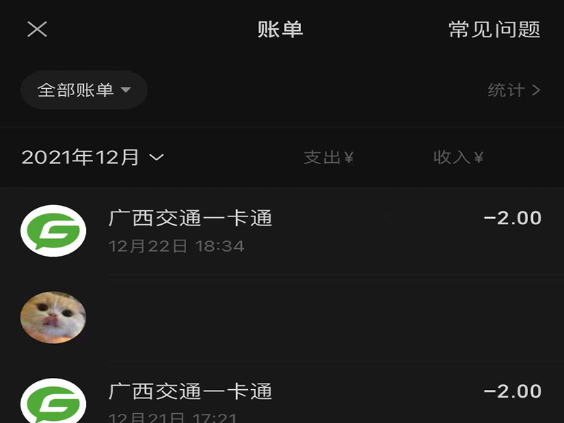 4、进入“账单”界面后,就可以查看各个月份的账单和交易记录。