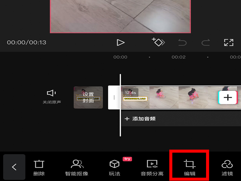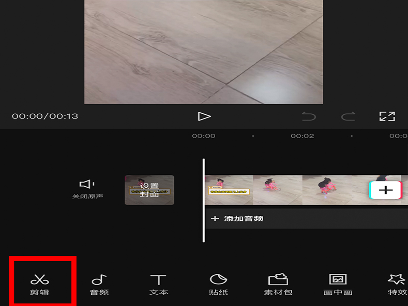 3、添加视频后,点击下方菜单栏中的“剪辑”。