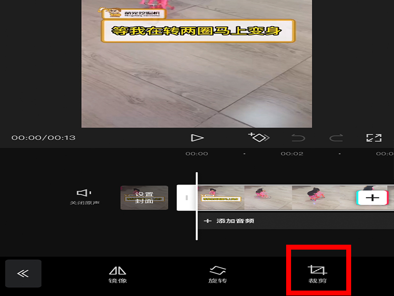 5、在新弹出的“剪辑菜单栏”中点击“裁剪”,就可以对视频尺寸进行裁剪了。