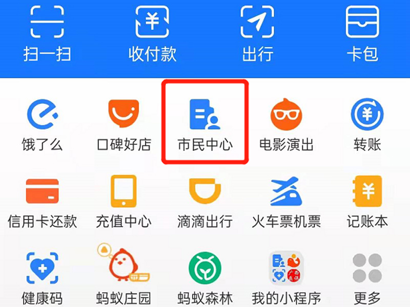 1、打开手机支付宝app,点击“市民中心”。