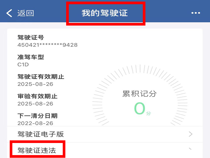2、在“我的驾驶证”界面点击“驾驶证违法”。