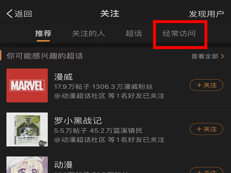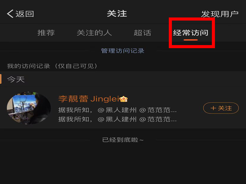 4、在“经常访问”页面中,就可以看到曾经访问过的博主。