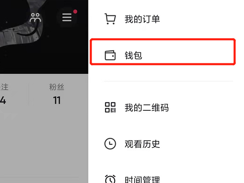 2、点击右下角的“我”后,再点击右上角的三条横,再点击钱包并进入。
