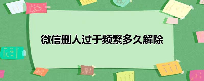 微信删人过于频繁一般一天就可以解除。每天删除微信好友不宜过度,10个左右为限。微信有自我保护功能,如果删除好友超过10人左右,页面会提示操作过于频繁,请稍后再试。如果操作当天已经出现“操作过于频繁”的话,最好等24小时后再删除好友。