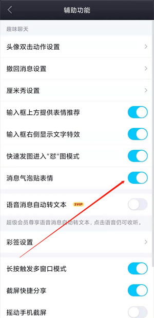 新版本qq是支持贴表情的,需要手动开启此功能。qq开启贴表情的方法如下:1、打开qq,点击左上角的头像。2、点击“设置”按钮。3、点击“辅助功能”按钮。4、开启“消息气泡贴表情”功能即可。