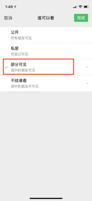 微信关注,获取更多 微信朋友圈设置部分人可见,其他人就不能看到了,只有你自己选择的部分人才能进行查看该朋友圈。操作步骤:1、发布朋友圈的时候,选择“谁可以看”。2、选择“部分可见”。3、指定可见的好友。