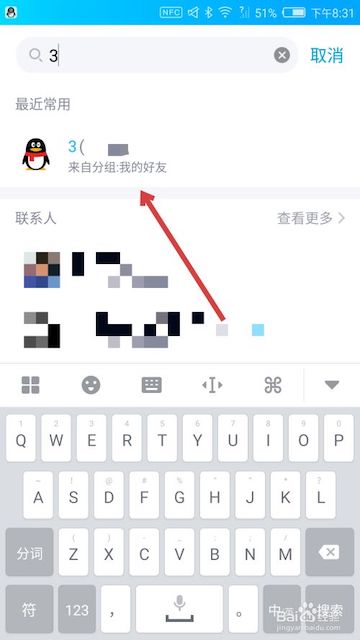 2、在搜索框中输入该好友的QQ号或昵称,可以找到该好友。