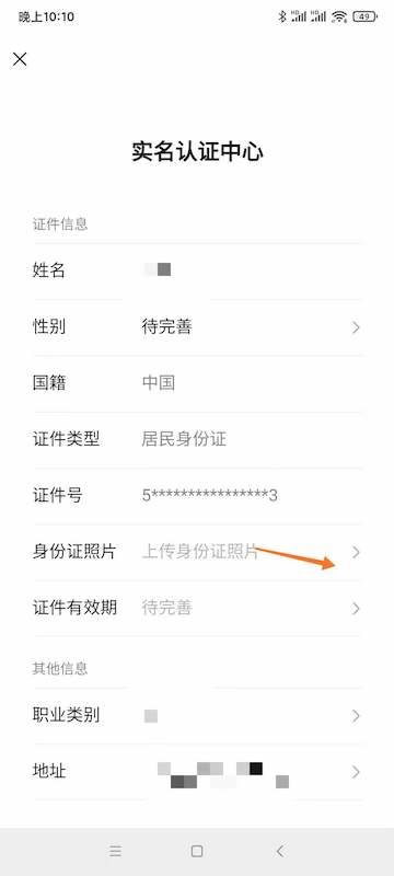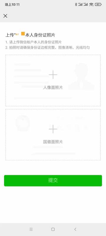 微信身份证上传步骤: