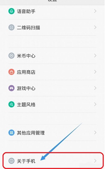 2、进入后选择“关于手机”选项。