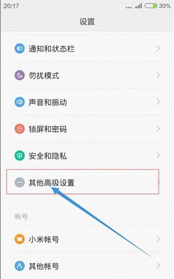4、然后返回设置界面,选择“其他高级设置”选项。