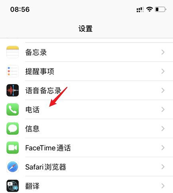 2、在“设置”找到“电话”并打开。
