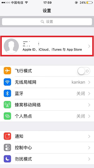 2、点击Apple ID用户名。