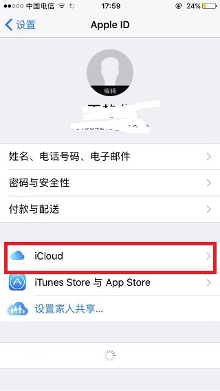 3、点击“iCloud”。