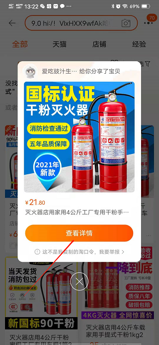4、打开淘宝后弹窗会自动出现,点击查看详情即可打开宝贝详情。