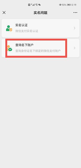 5、当进入到“实名问题“界面后,点击“查询名下账户”。如图: