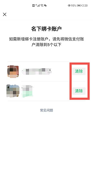 8、通过验证后,进入“名下绑卡账户“界面,如果有账号不是你注册的,选中后面的“清除”就可以解绑实名认证信息了。