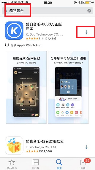 2、搜索并下载酷狗音乐。