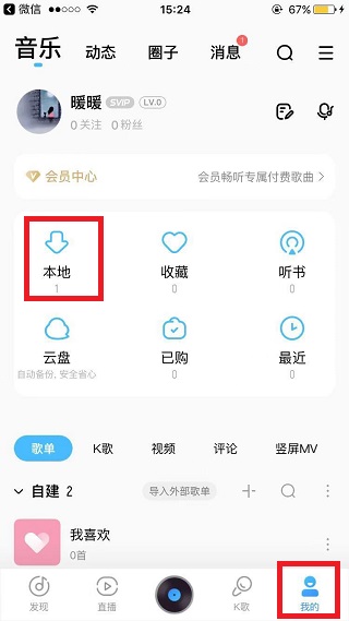 5、下载的歌曲在酷狗音乐软件的我的本地里可以查看。