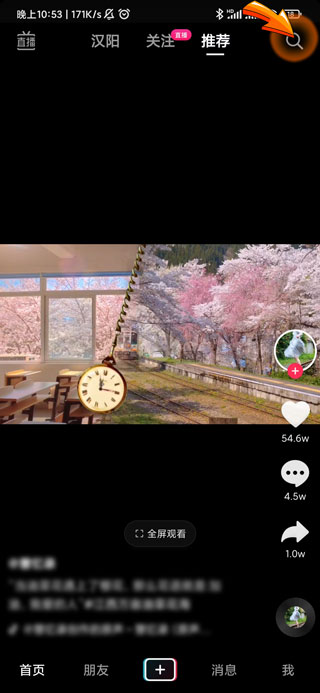 1、抖音扫码首先需要打开抖音APP,点击页面右上角“放大镜”图标。
