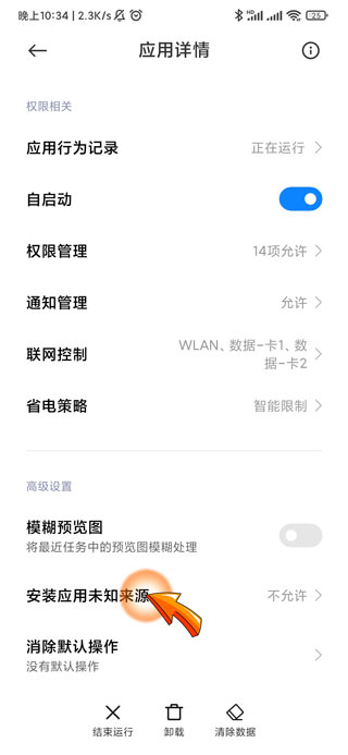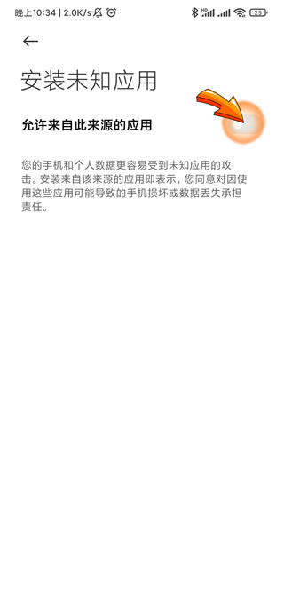 5、进入页面后点击下方的“安装应用未知来源”选项。